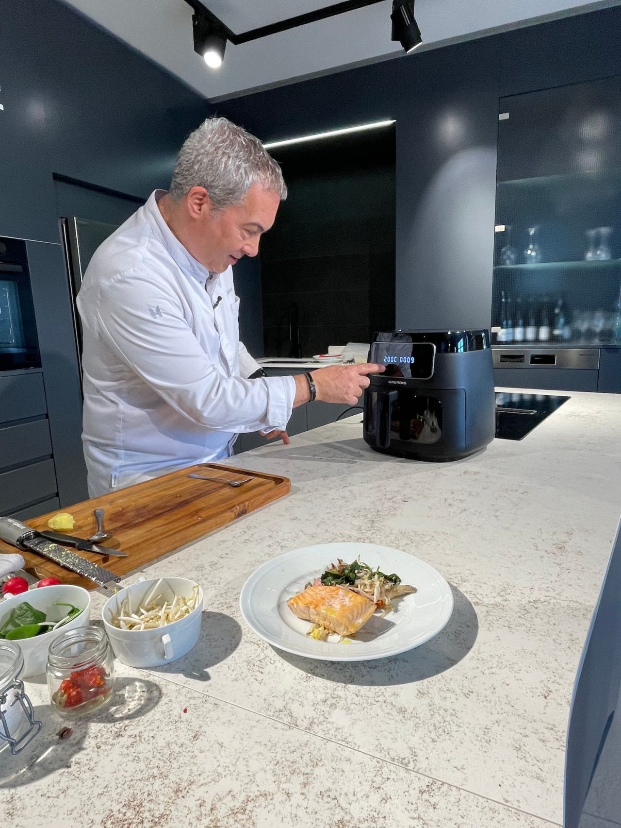 TV-Koch Robert Letz kocht mit der Grundig Heißluftfritteuse FRY 7320.
