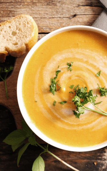 - Die Suppe mit einem Mixer pürieren (ggf. in mehreren Portionen). Das Püree zurück in den Topf geben. Fügen Sie Gewürze hinzu, um den Geschmack anzupassen.