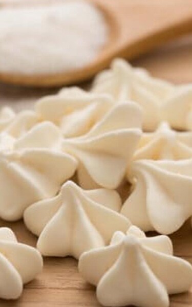- Den Weinstein zu den Eiern geben und verquirlen, bis er hell und luftig wird.