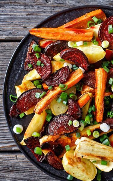 - Do Ahead: Rüben können 2 Tage im Voraus geröstet werden. Häute entfernen, abdecken und kalt stellen. Vor dem Schneiden auf Raumtemperatur bringen. Rosmarin kann 3 Stunden im Voraus gebraten werden. Bei Raumtemperatur ruhen lassen.