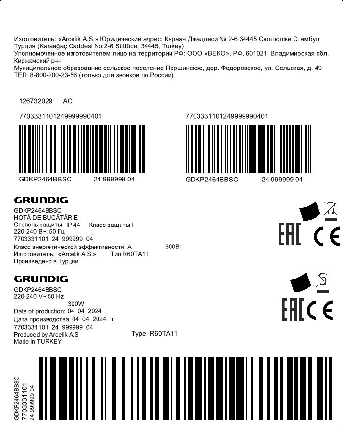 GDKP2464BBSC: Готвене(Абсорбатори за вграждане)