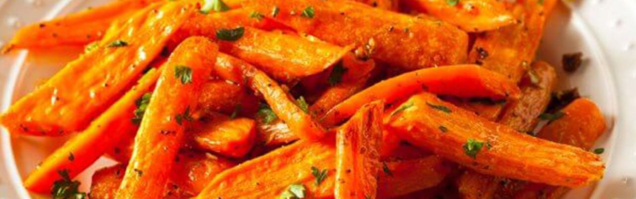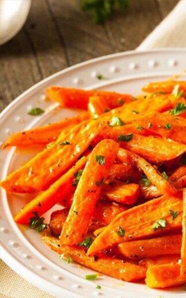 - Vypusťte a nechte v cedníku několik minut sušit v páře a pak vhoďte do velké plechovky s olivovým olejem, medem, octem a kořením. Pečte 30-40 minut.