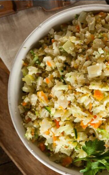 - Přidejte dresink a vychladlý květák k ostatním ingrediencím, které jste umístili do velké mísy. Házejte, dokud nejsou všechny ingredience začleněny a květák je potažen dresinkem. Posypeme špetkou papriky a trochou nasekané petrželky, pokud je to žádoucí.