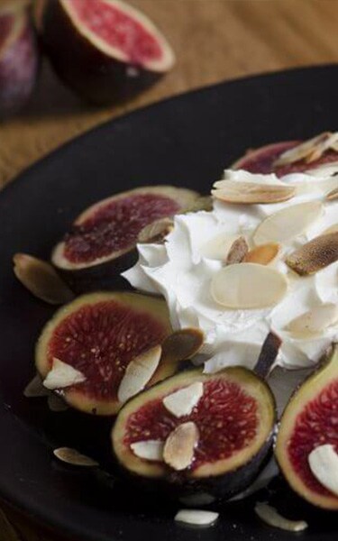 - Fíky podélně rozpůlte a uspořádejte je na talíř nebo talíř.