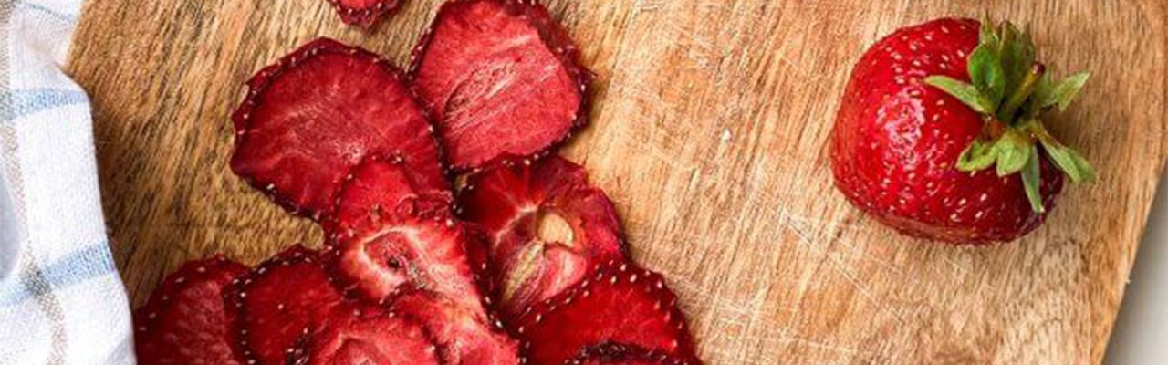 - Předehřejte troubu na 185°C. Bobule rozložíme na plech vyložený nepřilnavou podložkou a pečeme na rotačním plechu přibližně každých 30 minut, dokud bobule neztmavnou a nevyschnou kolem okrajů, ale uprostřed ještě mírně šťavnaté, 3–31/2 hodiny. Nechte vychladnout na plechu.