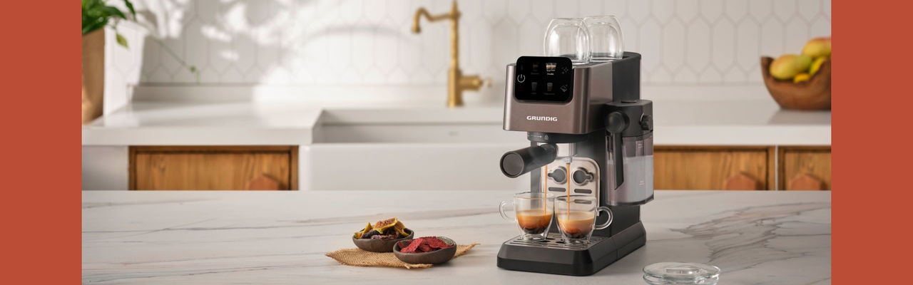 Die neue kompakte Siebträgermaschine von Grundig bringt mit einfacher Touch-Bedienung und 15 bar Pumpendruck Genussmomente für alle in den oft hektischen Alltag. On top ist das Gerät eine umweltfreundliche Alternative zu Kapselmaschinen.