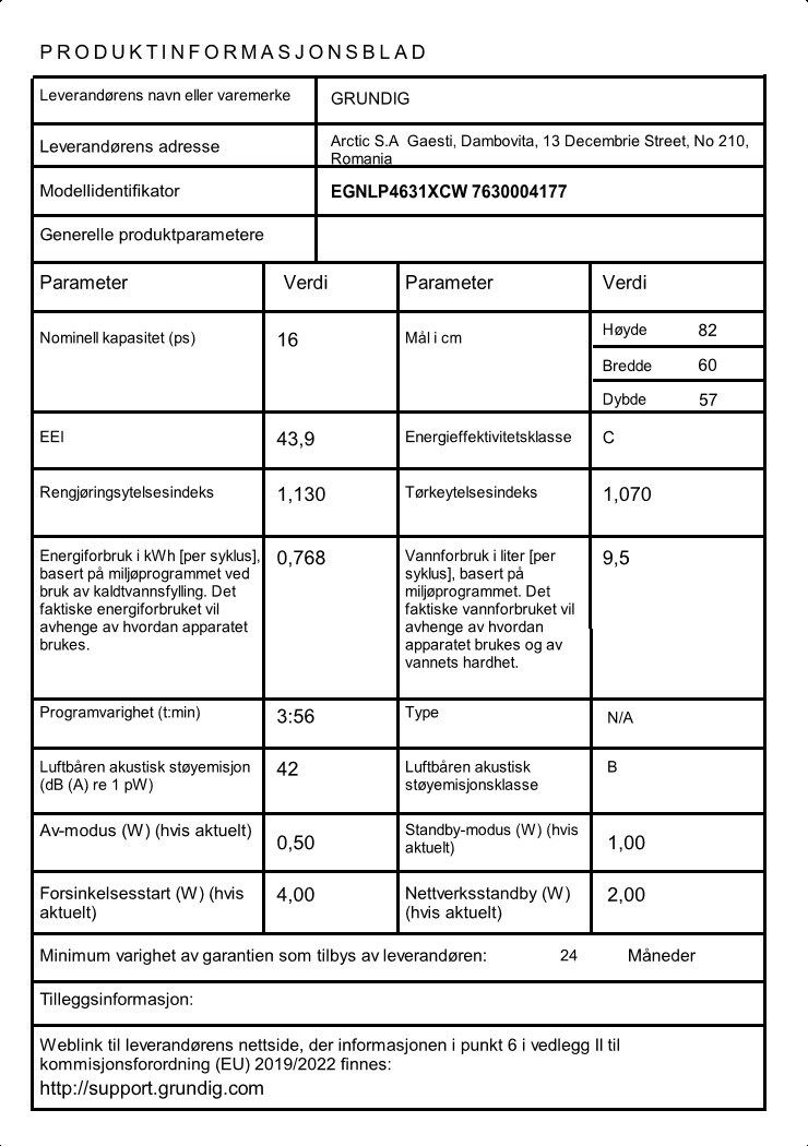 EGNLP4631XCW: Opvaskemaskine(Integrerede opvaskemaskiner)