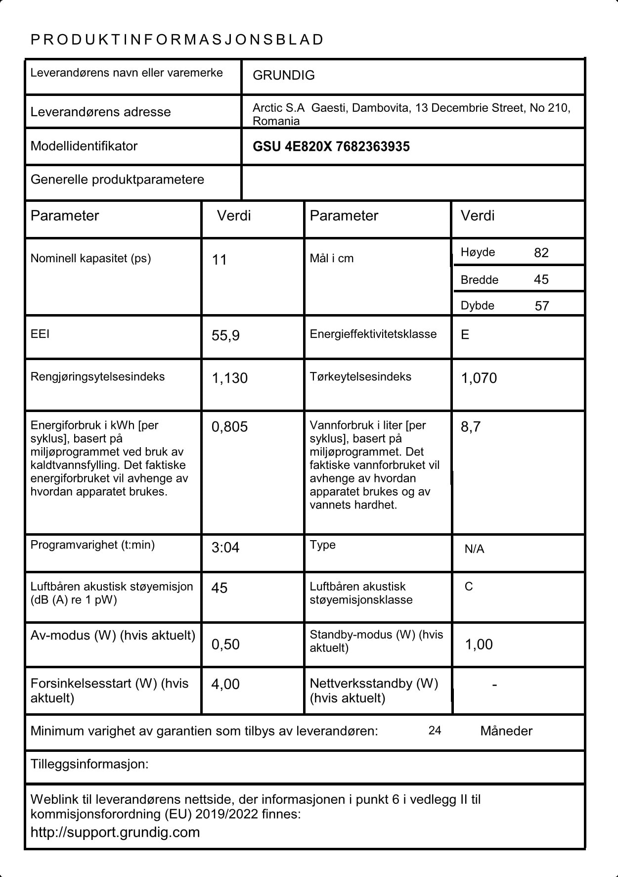GSU 4E820X: Opvaskemaskine(Integrerede opvaskemaskiner)
