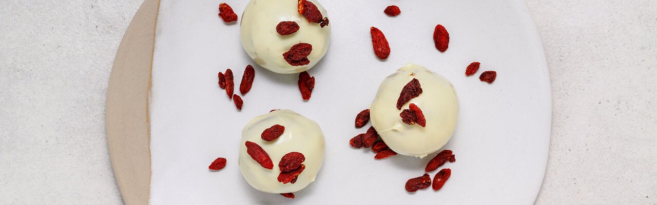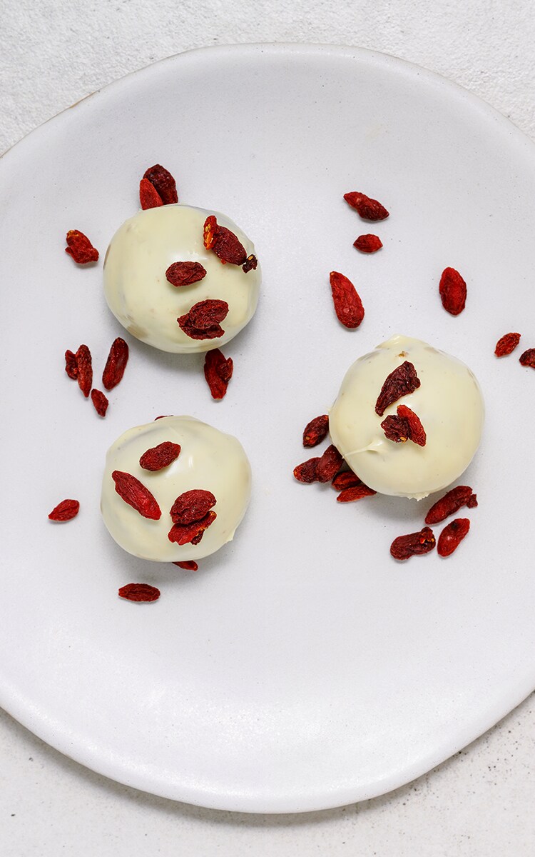 - Coge las porciones de masa una por una y cúbrelas con el chocolate blanco. Deja reposar durante 5 minutos.