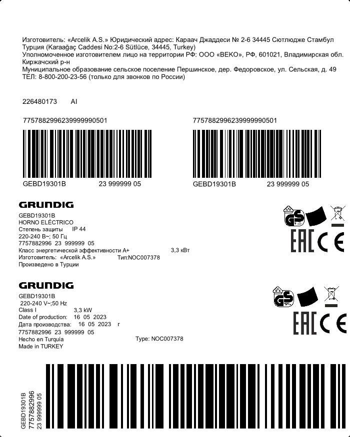 GEBD19301B: Horno Multifunción 3D con HotAero Pro y Vapor asistido