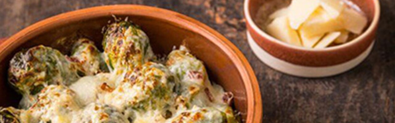 - Butter a baking dish, pour the sprouts and sprinkle with the béchamel. Bake at 180°C for 20 minutes.