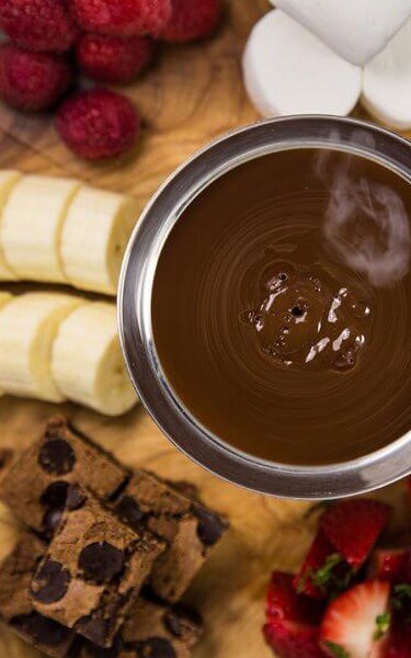 - Place the creamy chocolate in the fondue bowl and serve with a selection of seasonal fruits, cookies, and cake slices.