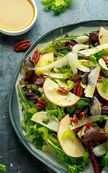 - Bunch of season greens (arugula, basil, lollo rosso, fennel leaf, etc.)