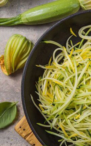 - Spiralize zucchini into thin noodles using a spiraliser.