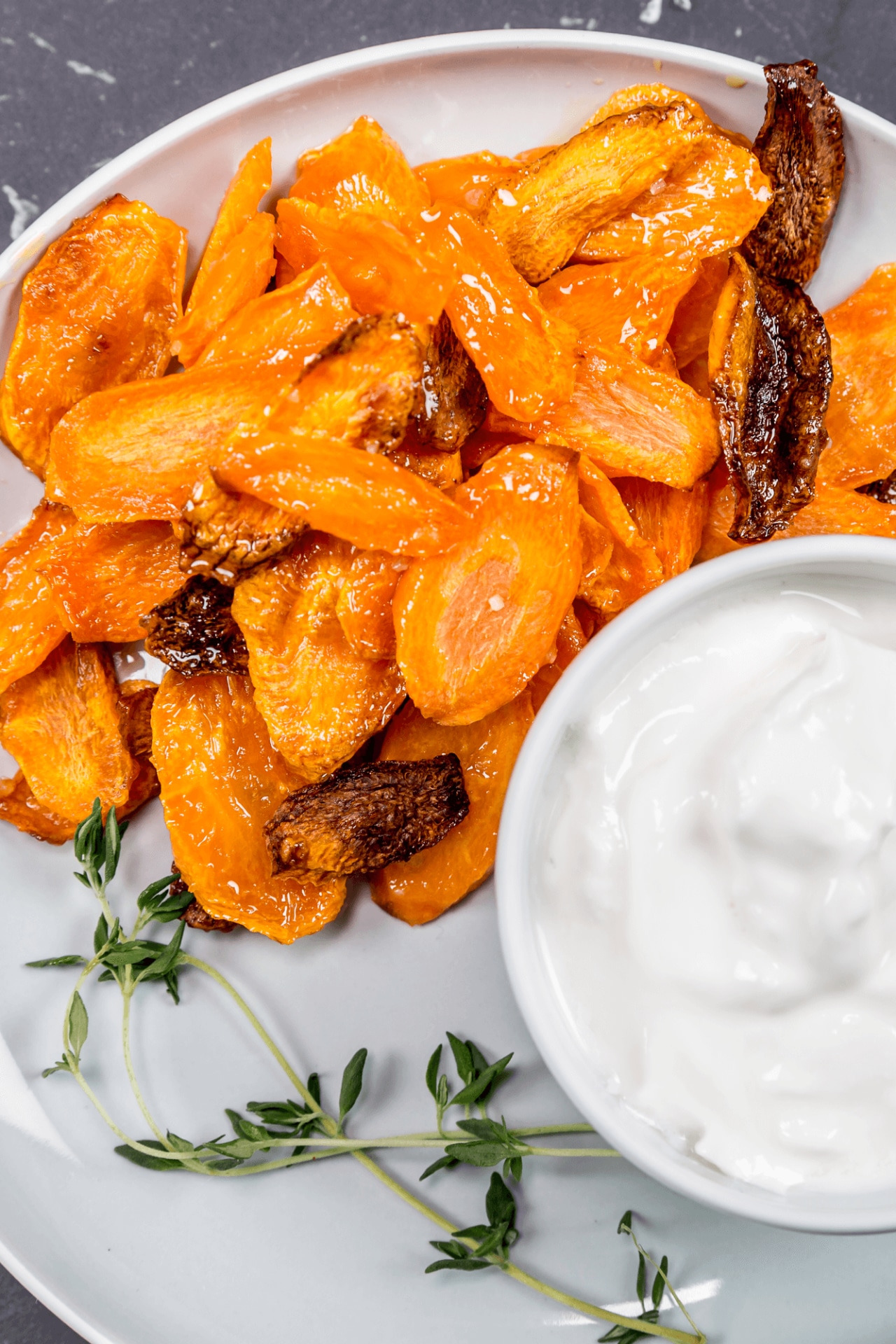 - Spre de skivede gulrøttene utover to stekebrett. Hell over olivenolje.
