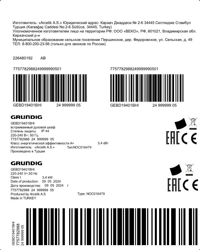 GEBD19401BHI: Produse de gatit(Cuptoare incorporabile)