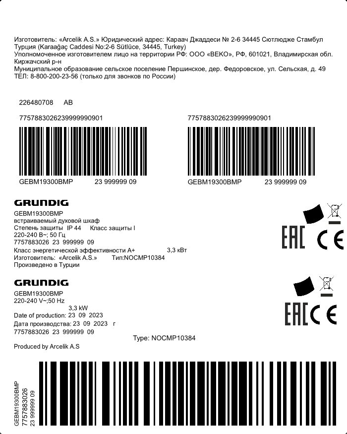 GEBM19300BMP: Produse de gatit(Cuptoare incorporabile)