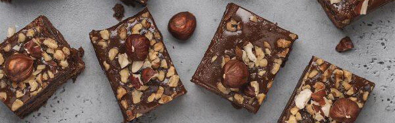 - Before the chocolate has frozen, sprinkle the broken hazelnuts on it speedily.