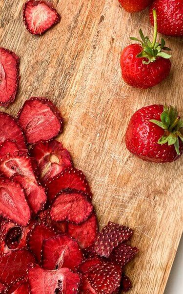 - Preheat oven to 185°C. Spread out berries on a rimmed baking sheet lined with a nonstick baking mat and bake, rotating baking sheet about every 30 minutes, until berries are darkened in colour and dried out around the edges but still slightly juicy in the centre, 3–3½ hours. Let cool on the baking sheet.