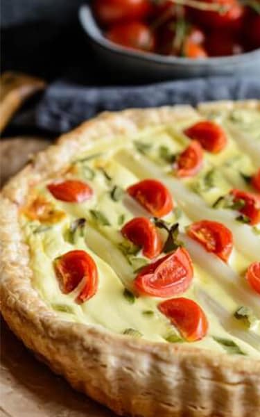 - Heat oven to 200°C/180°C. Grease a baking dish and fill it with cubed stale bread. Heat the butter in a large pan until it starts to foam. Add the leeks and garlic, and cook over medium heat for 5 mins, stirring as you go. Spoon softened leek mixture over the bread and top with cherry tomatoes.